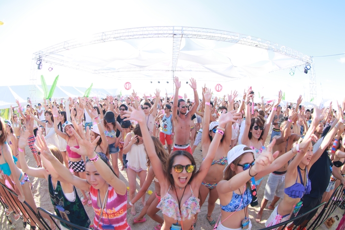 同フェスは、一般的なフェスとは趣が違い、会場が完全にビーチ内に設営され、海の中まで”フェス会場”となっています。強力なゲストDJ陣やアーティストもこのフェスに花を添え、一日中踊り明かす人達、海で夏を思い切り満喫しようと水と戯れる人達、お目当てのDJが出てくるまでのんびりと寝そべりながらお酒を飲んでチルする人達など、それぞれの楽しみ方で過ごすことができます。