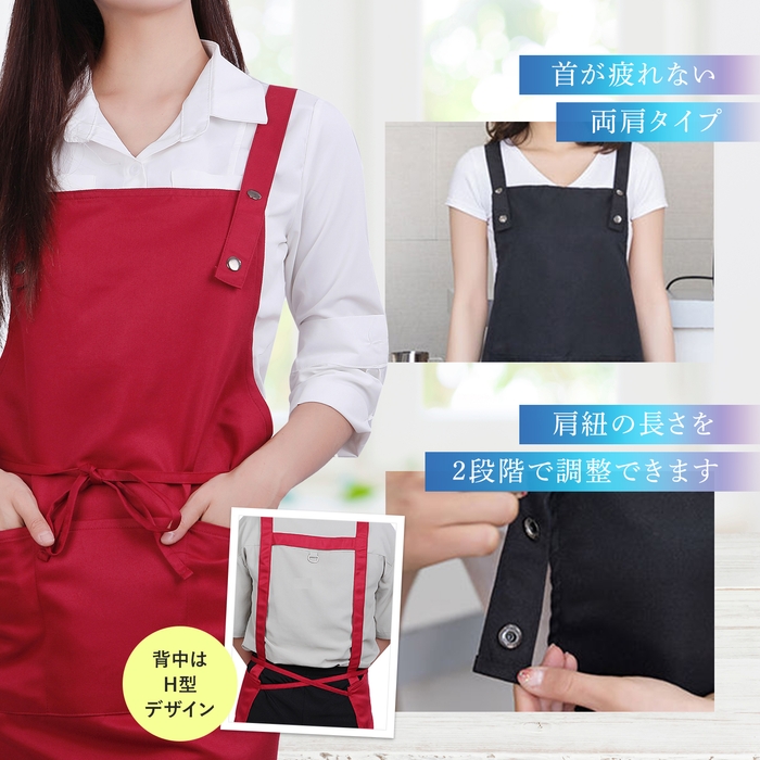 「幅広く、様々なシーンで使っていただきたい。」そんな想いから製作したハイスペックエプロン。3つの大きなポケット付き。料理の際にはハンドタオルを潜ませたり、ガーデニングの際にはハサミなどの道具を入れることができます。また、両肩かけのH型なので長時間着用しても首や肩が疲れにくい仕様です。2段階調整ができるので、お好みのサイズ感でご着用いただけます。