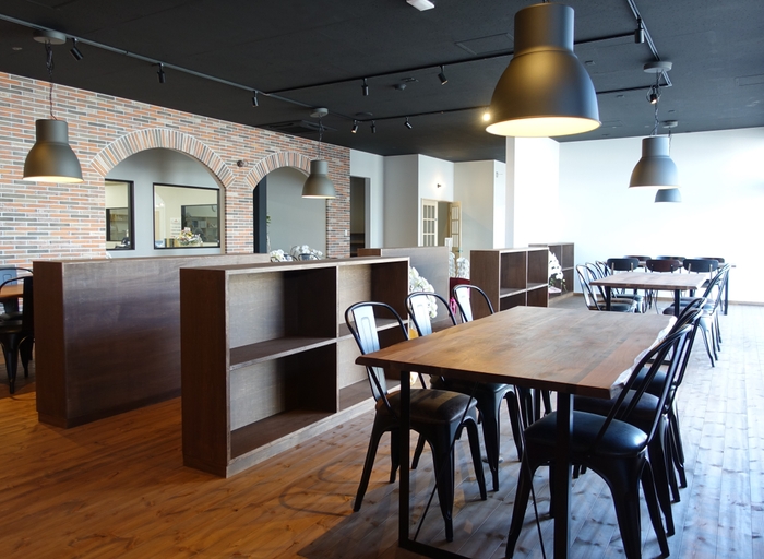 併設された約45坪のショールームには古き良きアメリカの街並みを彷彿とさせる本格的なレンガを用いた界壁や、解放感のある来場者用の打ち合わせコーナーを設置。当社職人スタッフのヴィンテージ感あふれる手作りの家具に囲まれながら、当社の想いである「家づくりは思い出づくり」の創出を図れる場所を設けています。