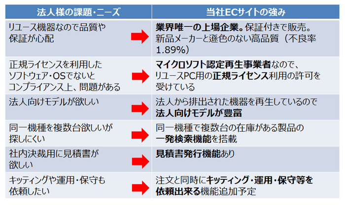 今回の全面リニューアルを通じて、当社の高品質リユースIT機器の提供をさらに拡大し、「新品よりリーズナブルに高品質なIT機器を調達したい」という根強い法人様ニーズにこれまで以上にお応えいたします。