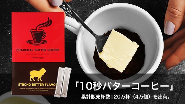 【バターコーヒー】120万杯分売れた! 10秒で作れる「チャコールバターコーヒー」の 累計販売数が4万個を突破