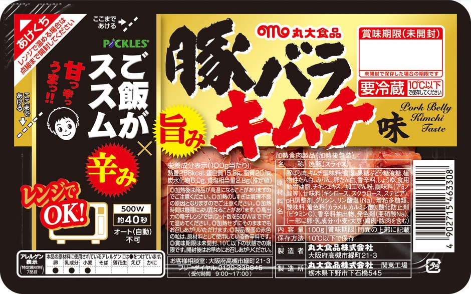 株式会社ピックルスコーポレーション(本社:埼玉県所沢市、代表取締役社長:宮本 雅弘)と丸大食品株式会社(本社:大阪府高槻市、代表取締役社長:井上 俊春)は、「ご飯がススム 豚バラキムチ味」を共同開発し、丸大食品株式会社から東日本(北海道、東北、関東)エリアで、2019年9月下旬より発売いたしました。