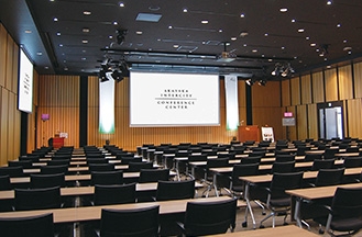 今回、個々のホールや会議室の音響・映像システムの整備はもちろん、全館または近隣の会議施設と一体となった運用ができるよう映像音声の双方向通信を可能とした環境づくりを行いました。