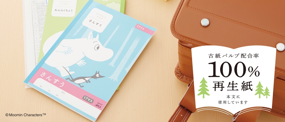ムーミン学習帳には、ムーミン一家をはじめ、ムーミン谷の住人達の日常が表現されています。仲間たちが喧嘩をしたり、互いに喜んだり、悲しんだり、慰めたりしている様子は私たちの日常ととても似ています。個性豊かな彼らが共に暮らすムーミン谷の物語を通じ、家族や仲間を想う心をこの学習帳を通して子どもたちに伝えていきます。