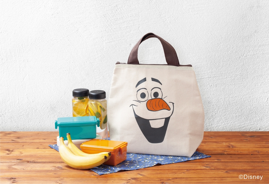オラフのフェイスプリントがキュートなキャンバス生地の保冷バッグは、これからの季節にランチBOX等の持ち運びや、
