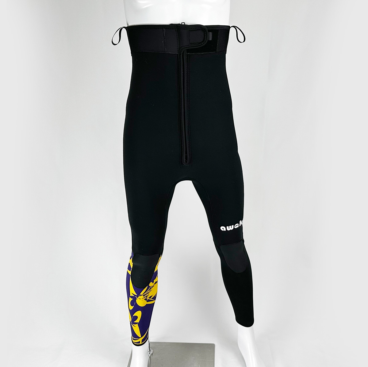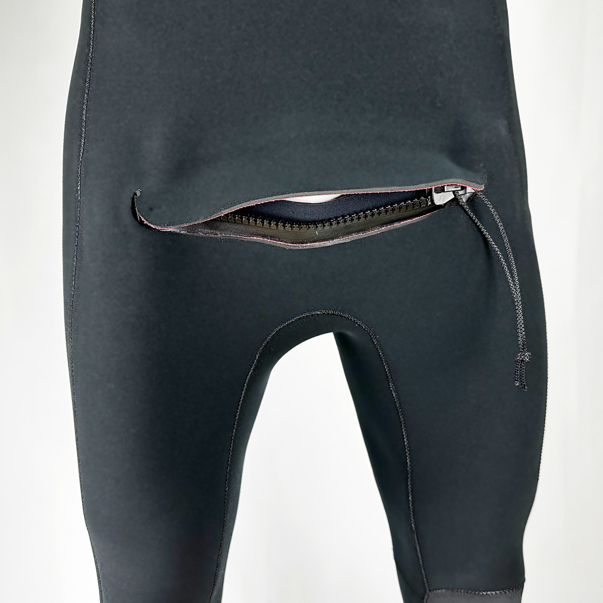 伸縮性が優れていることで脱着が楽に。小水用のファスナーも採用し、毎回脱がなければならないストレスを解消。また、生地は1.5~2mmを採用することにより圧倒的に動きやすくなりました。