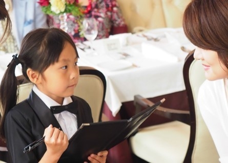 イベントには18組約70名のご家族にご参加いただきました。ウエイター・シェフ・パティシエなど、子供たちが自ら選んだ職種で役割を分担。フロアマネージャーはお客様(ご家族)へもてなしの挨拶をし、料理を説明。ウエイターは来店したお客様を丁寧にご案内、注文を取り、自らシェイカーで作ったカクテルを提供。シェフ・パティシエはキッチンで事前に仕込んだ料理やデザートを会場にいるお客様の目の前で仕上げるなど、プロ顔負けの本格的なパフォーマンスがなされました。
