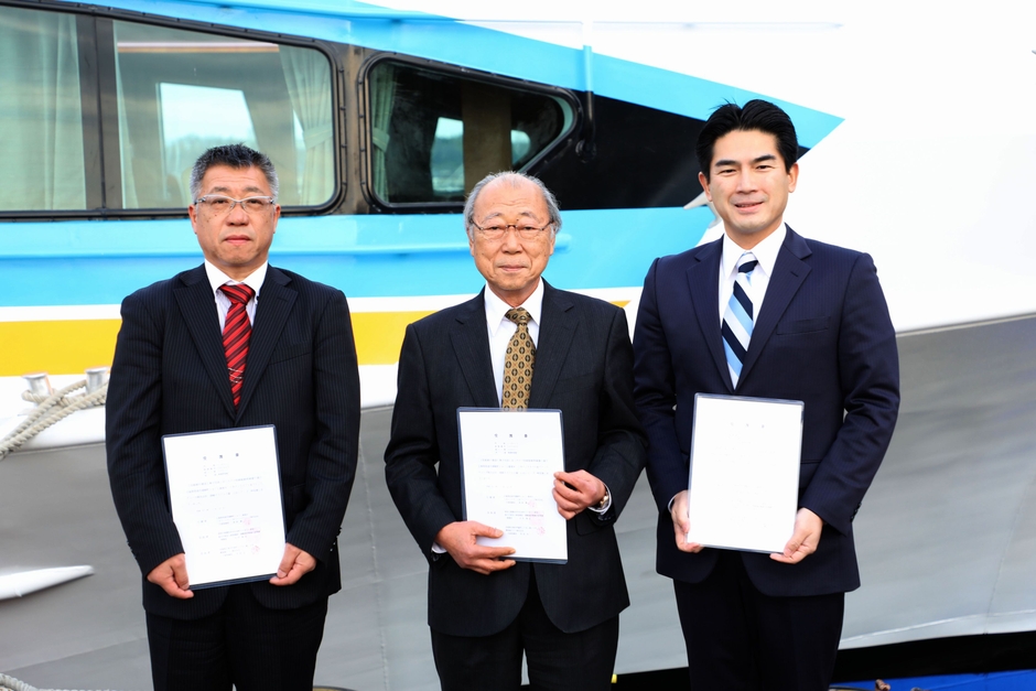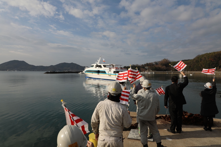 「網地島ライン様は、田代島、網地島の住民の皆さまにとって唯一の生活航路であり、暮らしに不可欠な物資を運ぶ重要な交通手段です。ツネイシクラフト&ファシリティーズ様の卓越した最新の技術力を結集して建造していただいた本船が、必ずや島民や観光客の皆さまの期待に応え、活躍することを祈念いたします」