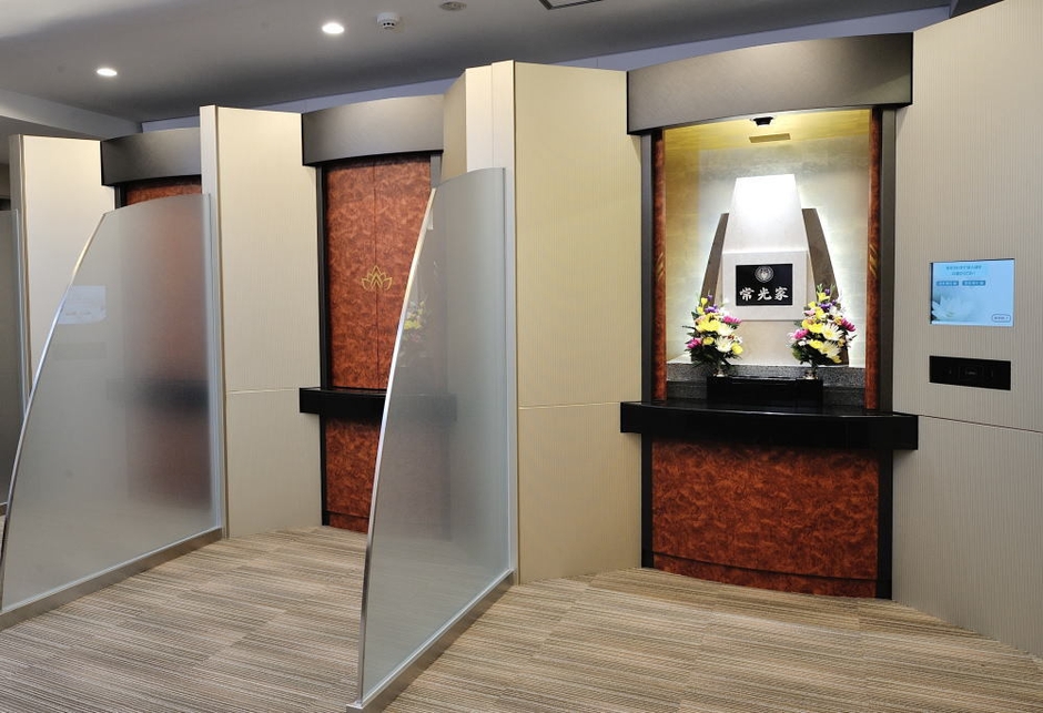 参拝方法は、まず「参拝ブース」へ。ブースは広さや常設されている墓石型の装飾の違いにより「通常仕様」と「特別仕様」の2種類をご用意。