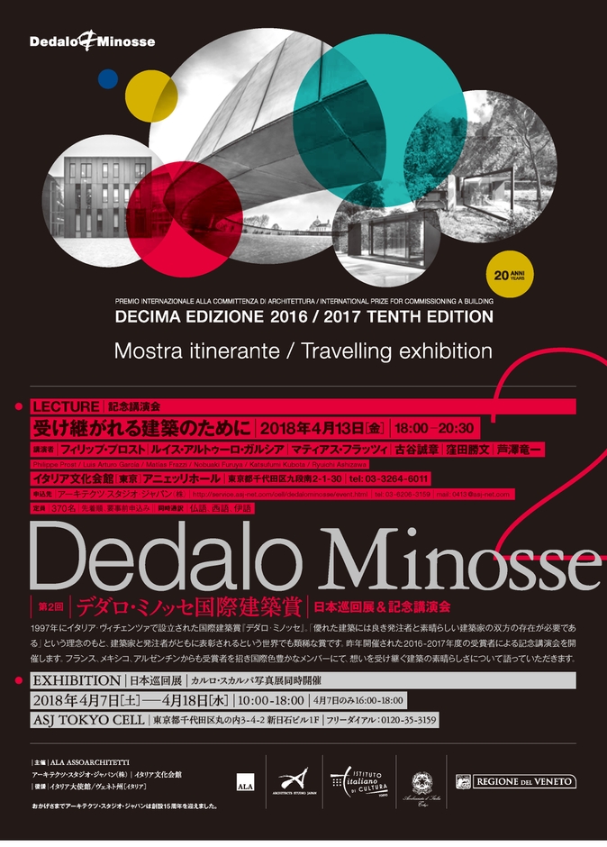 デダロ・ミノッセ国際建築賞日本巡回展をASJ TOKYO CELLで開催 LECTURE 記念講演会をイタリア文化会館にて実施