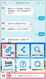 2、DeNAトラベル公式LINEのトーク画面のメニューから「ID連携」をタップする