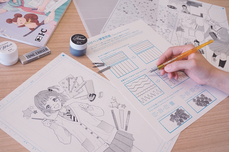 アイシーまんが工房PROは、本格的な漫画制作が体験できる漫画スターターセットです。つけペンやインク、アイシー漫画原稿用紙やアイシースクリーンといったプロ仕様の画材のほか、漫画の描き方がわかる書籍『まんがLESSON』、なぞりがき練習用の原稿用紙などが揃っており、複数の画材を買い揃えることなく漫画制作を楽しめます。