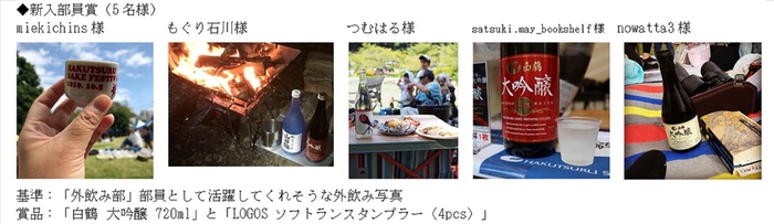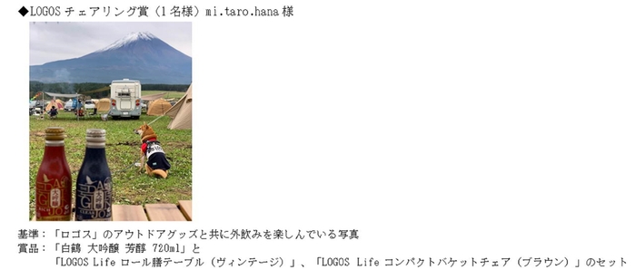 場合は「#白鶴」と「#外飲み部」、「#ロゴス」)を付けて投稿してください。