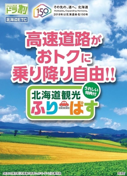 「北海道観光ふりーぱす」は、ETC車を対象に北海道内のすべての高速道路が定額で乗り降り自由となる商品です(2018年3月7日記者発表済)。