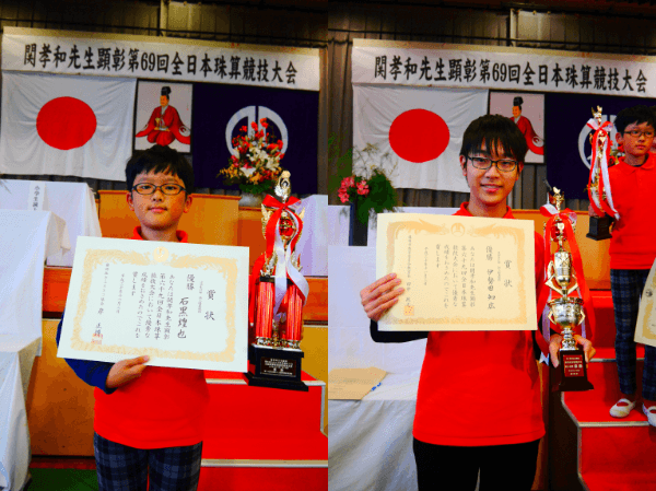 いしど式 石戸珠算学園在籍生徒2名が 読上暗算競技でそろばん日本一に! 「関孝和先生顕彰第69回全日本珠算競技大会」