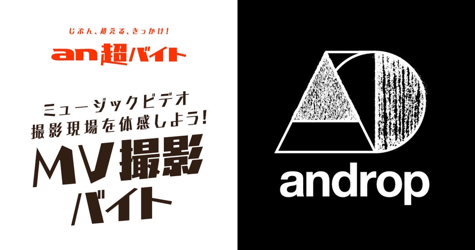 株式会社インテリジェンスが運営するアルバイト求人情報サービス「an」< https://weban.jp/ >は、思わず挑戦してみたくなるような「an超バイト」の新企画として、個性溢れる世界観で人気を博すロックバンド“androp”のミュージックビデオの撮影現場で、制作のお手伝いをするバイトを2017年5月10日(水)より2名募集します。報酬は、日給5万円と、サイン入りグッズをプレゼントします。