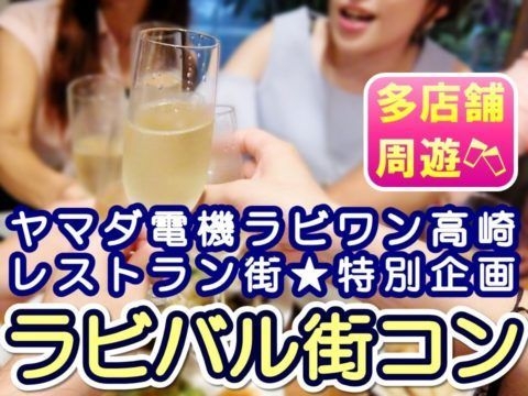 ラビ高崎バル街コンとは、ヤマダ電機ラビワン高崎のレストラン街を周遊しながらバル感覚で楽しめる街コンです。 参加店舗は10店舗以上を予定しており、全ての飲食店を巡る事もできる企画となっています。個店の合コン形式というよりも、色々なお店を1度で楽しみながら、恋人探しだけでなく飲み友達や趣味友達も探せるような自由度の高いイベントとなっております。