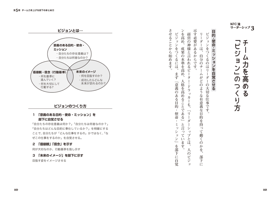 本書は、世界中で効果を上げているKFC独自の人材育成法を主軸にし、5000人以上の育成に携わり、ベテランから若手まで成長させてきたトレーニングコーチだからこそ知っている部下の生産性を上げる方法を公開しています。
