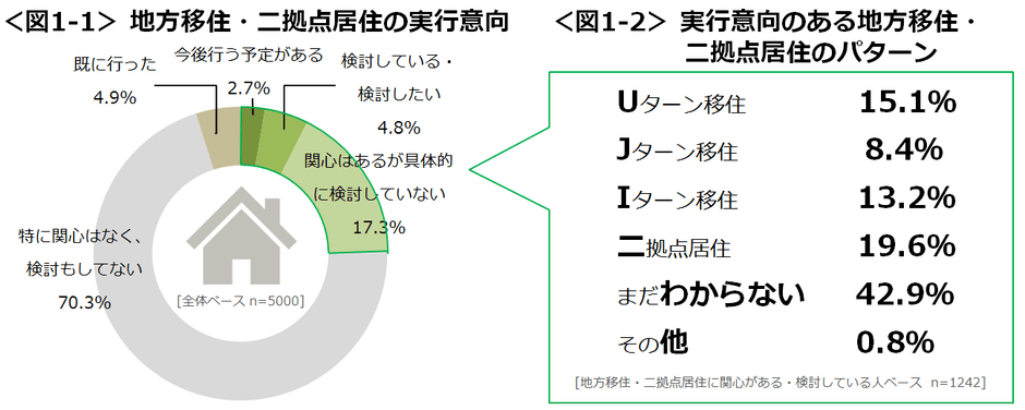 全体の4人に1人が移住意向あり 移住にはゆったりした暮らしを求める傾向 働き先や日常生活の快適さが課題か