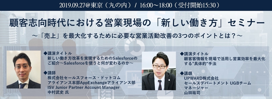 UPWARD、「顧客志向時代における営業現場の“新しい働き方”」 セミナーを開催 ~9月27日東京 「売上」を最大化するための3つのポイント~