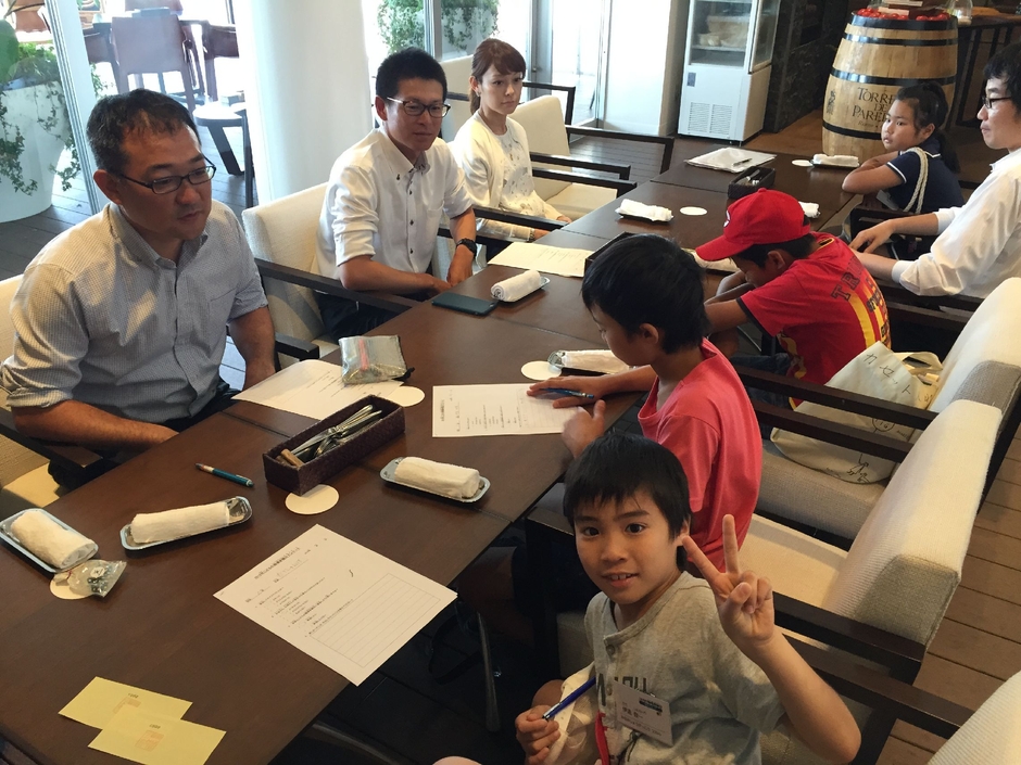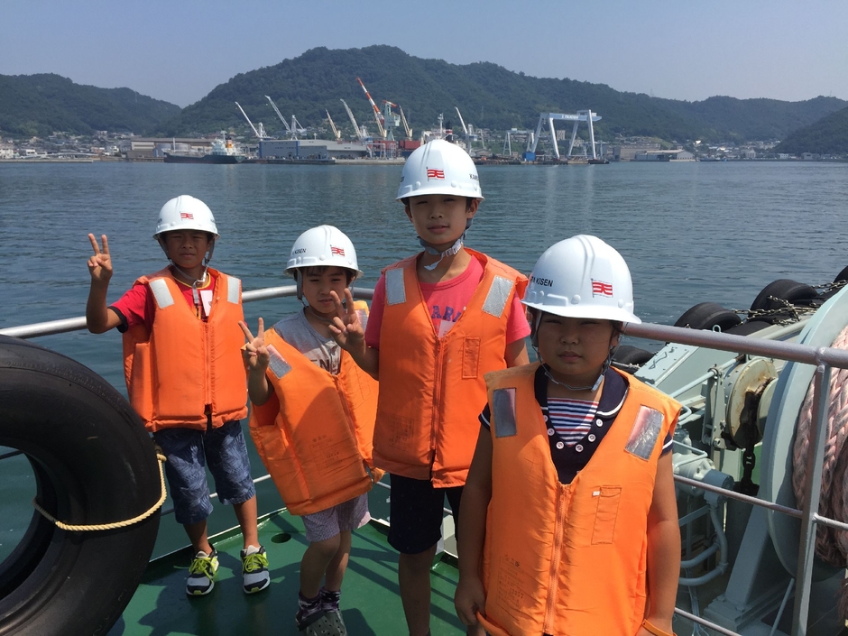 神原汽船のこどもの職場参観日に、従業員の子ども4人が参加