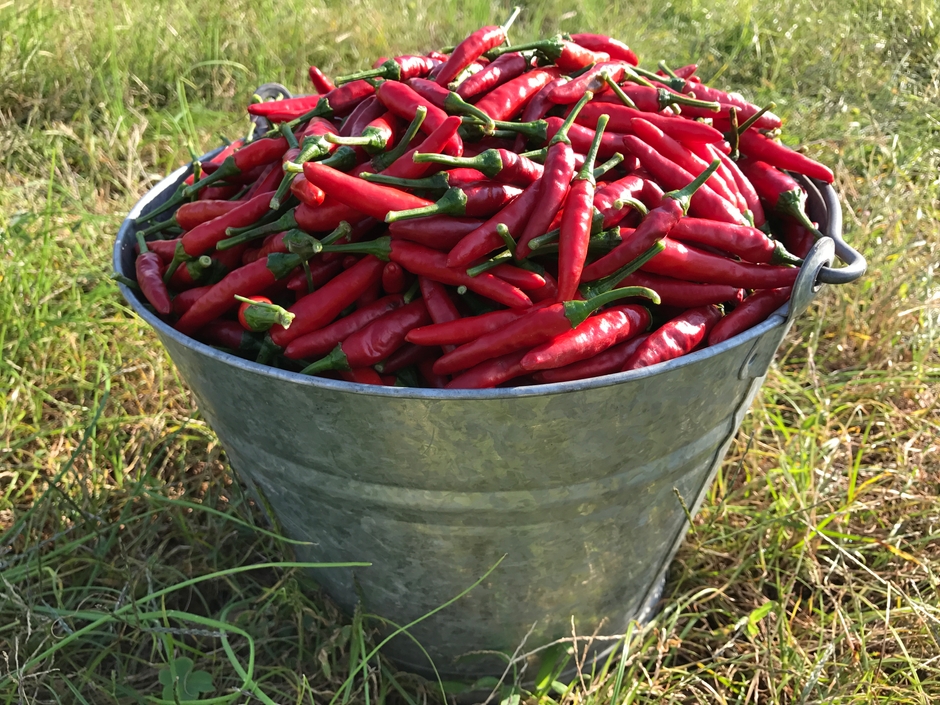 熊野の温暖な気候を活かし、ハバネロやブートジョロキアをはじめ約8品種の世界中の唐辛子を栽培しています。農薬を使わない安全安心の国産唐辛子です。平成31年4月から一味唐辛子や唐辛子ドレッシングを市内の道の駅を中心に販売し、人気商品となっております。