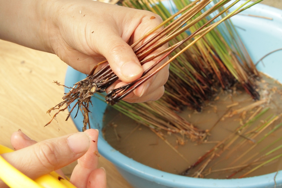 備後い草再生プロジェクト実行委員会は、2014年9月23日福山市内で「株分け・箱苗作り体験会」を開催しました。備後の伝統や地域貢献、発展に関心のある人が集まり、交流を深めることを目的とした本体験会には、市内から18人参加しました。備後い草の最高品種であり今では稀少品種である”せとなみ”の植え付けの準備として、い草の苗を株分けし、植え付けをする機械に設置するための箱苗づくりをしました。い草に触れることで地元の産業の歴史を知り、誇りを持って地元を見つめ直すきっかけ作りとして、ワークショップの実施など活動の継続を予定しています。今回の箱苗された備後い草は、11月下旬から12月中旬頃に本田に植え付けし、2015年7月に刈取る予定です。
