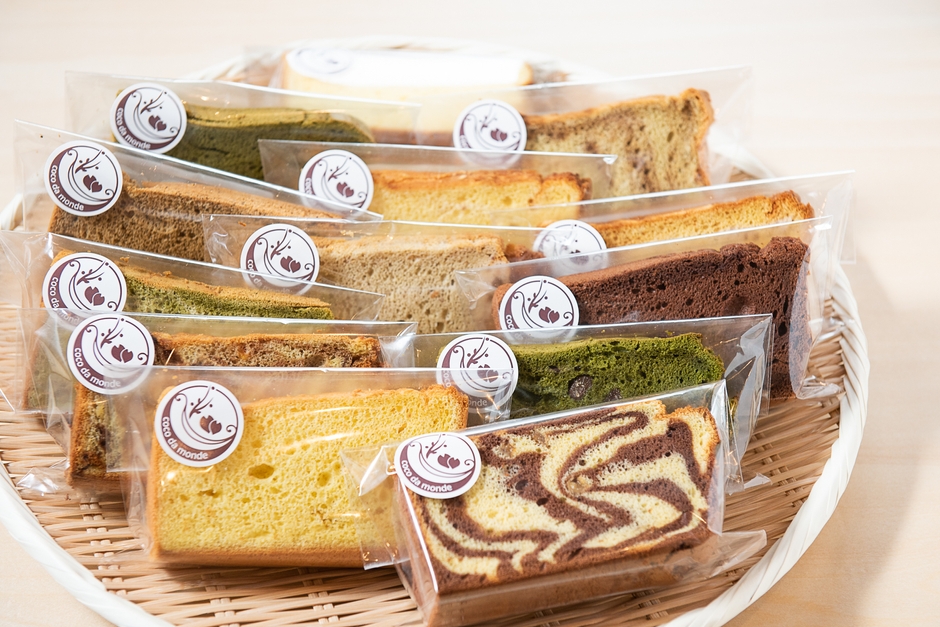 本格讃岐うどん こころ彩(静岡市駿河区高松)、JR静岡駅のグランドキヨスク、ベルマートキヨスク静岡東では9月18日よりリニューアル後のシフォンケーキを販売しています。