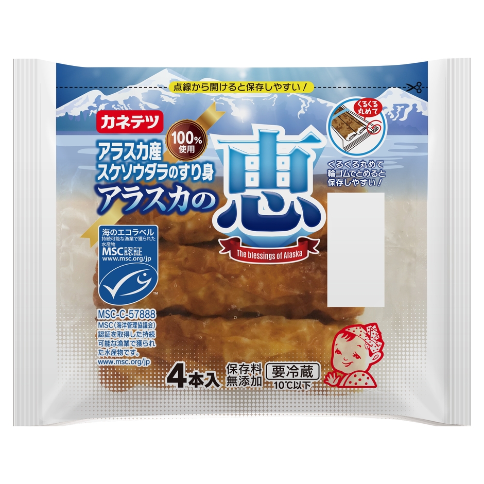 カネテツデリカフーズ株式会社(本社:神戸市、代表取締役社長:村上 寛)では、海の資源を原料とするメーカーとしてお客様へ安定的・継続的においしい水産物をお届けするため、持続可能な漁業で獲られた水産物であることを示す「MSC認証」のちくわの新商品「アラスカの恵 MSC認証」を2020年3月1日(日)より全国で発売いたします。