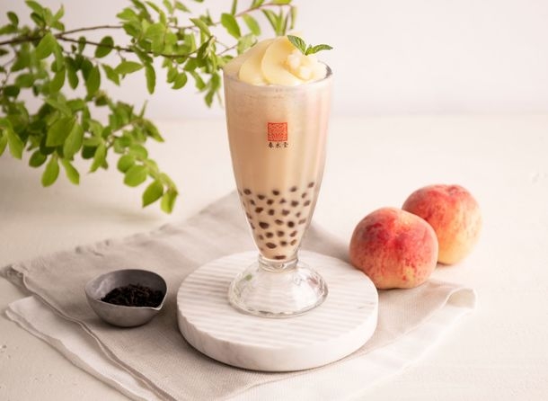 この度、銀座店限定として新発売する『“銀座のタピオカミルクティー”タピオカ白桃鉄観音ミルクティー』は、台湾産の鉄観音を使用したミルクティーに、香りさわやかな白桃果汁や果実を贅沢使用。白桃と手作りのきび砂糖シロップがバランス良く鉄観音の香ばしさを引き立てる、上品に仕上げたミルクティー。たっぷりクリームと桃の果実のトッピングは、まさに銀座にふさわしい豪華バージョンです。