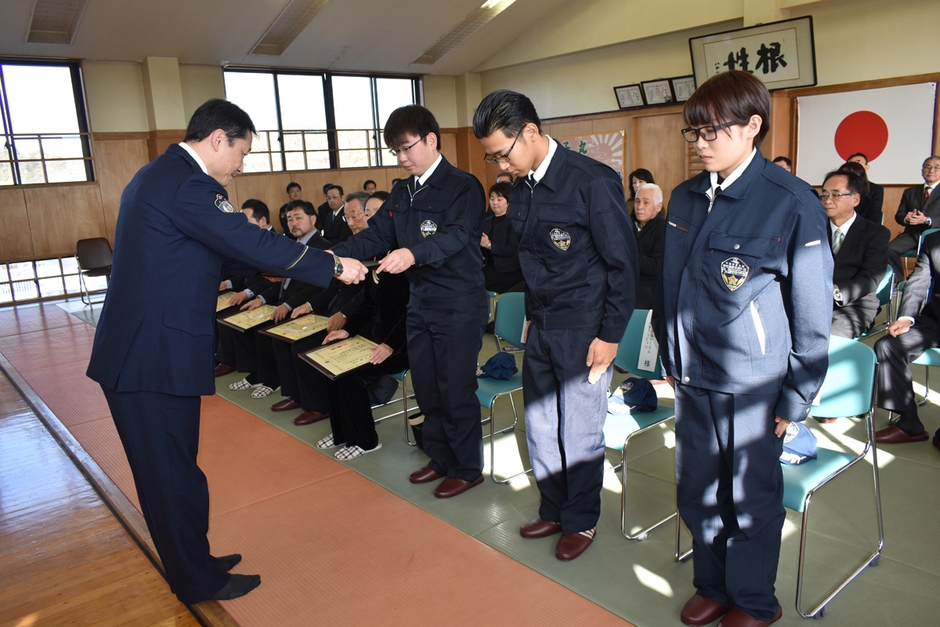 スターラビッツからは代表3人が出席し、署長から胸を張って感謝状を受け取りました。サークル代表で危機管理システム学科2年堀越泰徳さんは「これからもスターラビッツの一員として活動を続け、銚子警察のお手伝いができれば」と心境を語りました。式では計44の団体と個人に感謝状が贈られました。