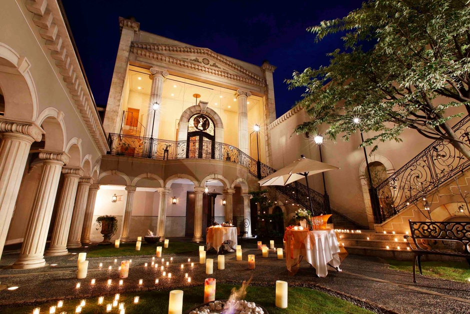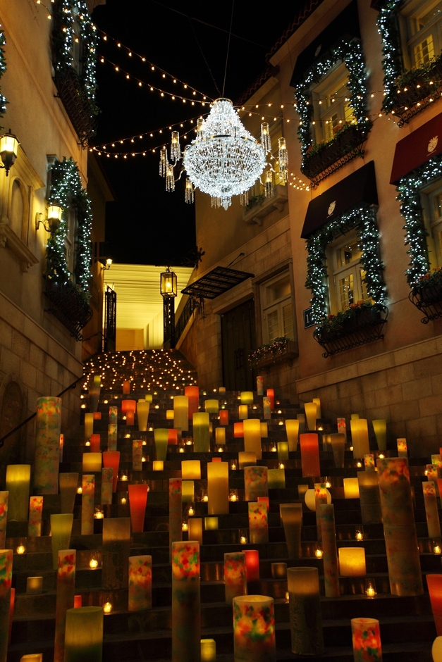スカーラ(大階段)にキャンドルデコレーションをし、冬の夜に映える、あたたかな空間をつくりあげます。