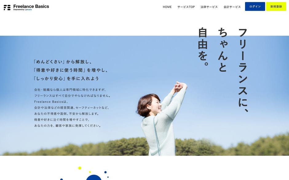 フリーランス総合支援プラットフォームを提供するランサーズ株式会社(本社:東京都渋谷区、代表取締役社長:秋好 陽介、以下「ランサーズ」)は、ランサー生活圏構想による各サービスを統合し、個人の株式会社化を実現する『Freelance Basics』としてサービスの提供を開始します。会社員の優位性をフリーランスにも提供し、会社員とのリソース差分をなくすことで、フリーランスが顧客に価値提供する得意領域にフォーカスして時間を使えるようになる仕組みを構築します。創業から10年、仕事マッチングプラットフォームとしてフリーランスの顧客獲得を支援してきましたが、働き方が急速に多様化する今、働き手が抱える様々な課題を総合的に支援することで、これまで以上にフリーランス個人の持つ能力や才能(タレント)が最大限発揮できる社会を目指します。