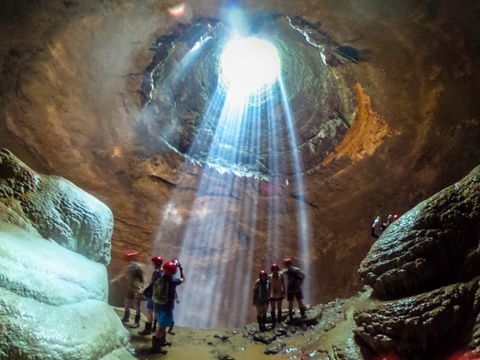 光の絶景シャワー なんともフォトジェニックな洞窟内の風景