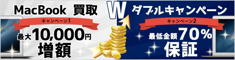 ≪最大1万円UP & 買取価格70%保証≫ MacBook 売るなら今! 買取Wキャンペーン9月25日(月)まで実施中 【通信販売・宅配買取のコムショップ】