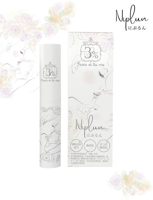 この度ついに、ママとベビーに優しいコスメ商品を開発し、新ブランド「3%-Trois et la Vie(3パーセント・トワ・エ・ラ・ヴィエ)」を立ち上げました。フランス語で「3%と人生」という意味のこのブランド名は、妊娠期から子供の手がかからなくなる時期が一生のうちの「3%」であることが由来です。“3%の愛おしい1分1秒を支える存在でありたい”という想いから生まれたブランド、通称「3%」が第一弾として発表する商品は“乳頭ケア”ができる「にぷるん」。京都大学発化粧品原料等の使用を得意とする株式会社プラチナファーマと共同で開発したスティック型保護クリームです。