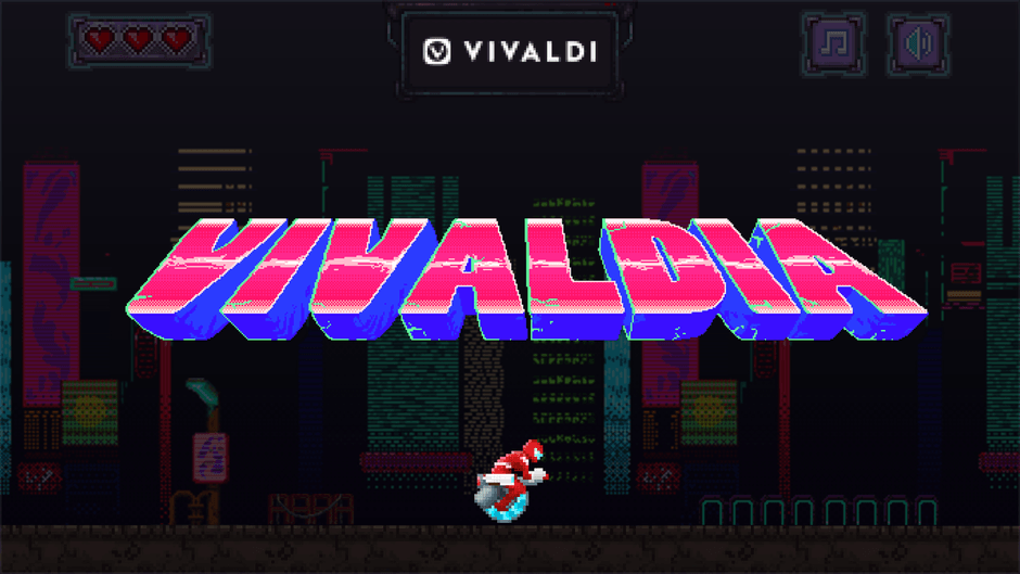 Vivaldi Technologies(ヴィヴァルディ テクノロジーズ/本社:ノルウェー・オスロ、CEO:Jon von Tetzchner)は2020年10月15日、80年代アーケードゲームをリスペクトした、ドット絵キャラクターの横スクロールアクションシューティングゲーム「Vivaldia(ヴィヴァルディア)」をリリースします。フューチャーノワールとサイバーパンクの世界観にインスパイアされたゲームです。