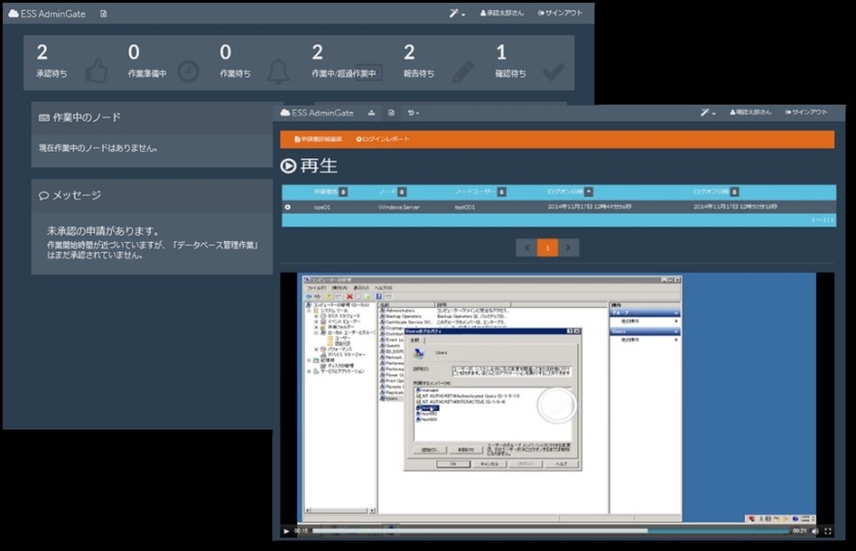 「ESS AdminGate」は、Windows、Linuxといったサーバーに対するアクセス管理、ログ収集&不正アクセス検査、動画による操作記録など様々なセキュリティ対策を実現するソフトウェアです。これまで多くのお客様でご利用いただいている一方、クラウドサービス事業者との提携によりIaaSサービスのオプション機能としてサービス提供を行っています。