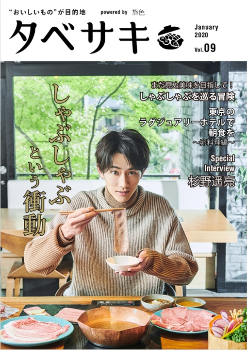 大人の女性に上質な旅時間を届けるウェブマガジン「旅色」が提案する「食」に特化した電子雑誌「タベサキ」。2020年初めての号であるvol.9の表紙には、俳優やモデルとして活躍する杉野遥亮さんが登場します。地元の友人と食事に行く際はほとんど焼き肉だというほど肉好きの杉野さんとともに行くのは、代官山。「いろんなお店に行って、グルメの幅を広げていきたいと思っています。」と語る杉野さんに、口の中でほどける牛タンや程よいサシが美しいサーロインなど、さまざまな部位をしゃぶしゃぶしていただきました。