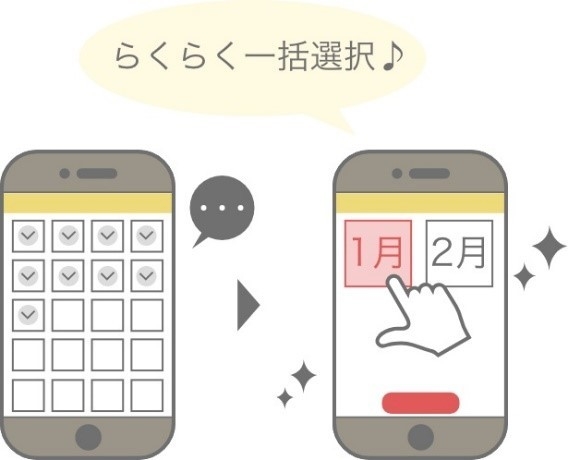 「期間」「月ごと」「日ごと」で一括して写真を選択することが可能です。