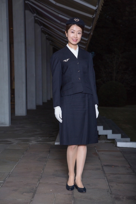 世界的なオートクチュールメゾンに依頼した最初の制服。夏の水色のワンピース、紺色の冬のスーツ、共にステッチ使い、ベルトやブラウスの胸元のリボン飾りに日本の帯をイメージした当時のモチーフが使われている。複雑な型紙で、外から見えない隠しポケット、一見ツーピースに見えるウエストラインの切り替えやほっそりしたラインを作る微妙なダーツなどにクチュールメゾンのテクニックが駆使されている。