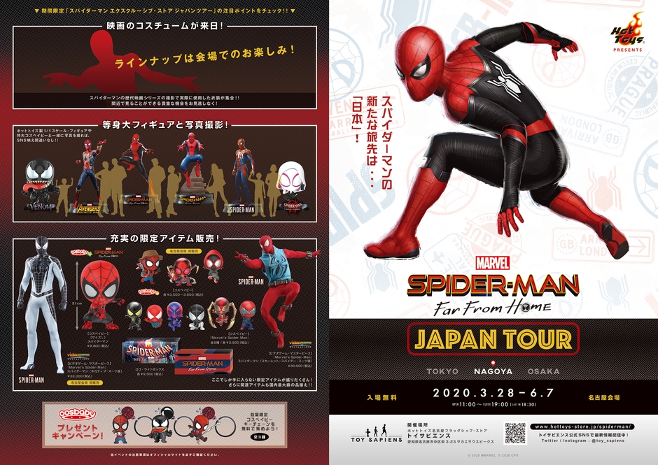 株式会社ホットトイズジャパン(所在地:東京都渋谷区、代表取締役社長:フランク・デュボア)は、ホットトイズ フラッグシップ・ストア「トイサピエンス」名古屋店にて【スパイダーマン エクスクルーシブ・ストア ジャパンツアー】を、2020年3月28日(土)~6月7日(日)の期間限定、入場無料にてオープンいたします。