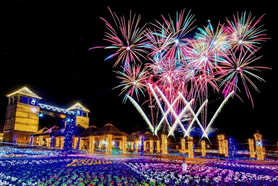 100万球のイルミネーションと花火のコラボレーション