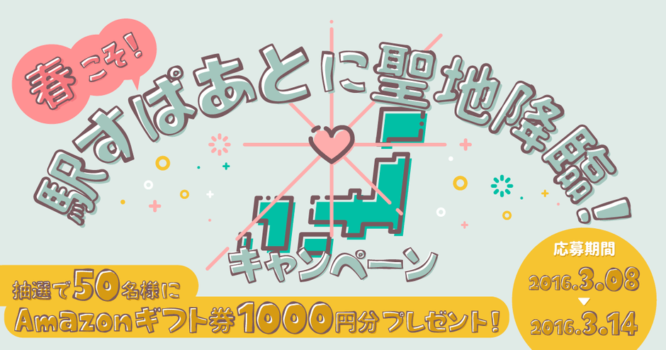 \7つの聖地を調べて1,000円分GET/「春こそ!駅すぱあとに聖地降臨!キャンペーン」3月8日からホワイトデーまで実施中!