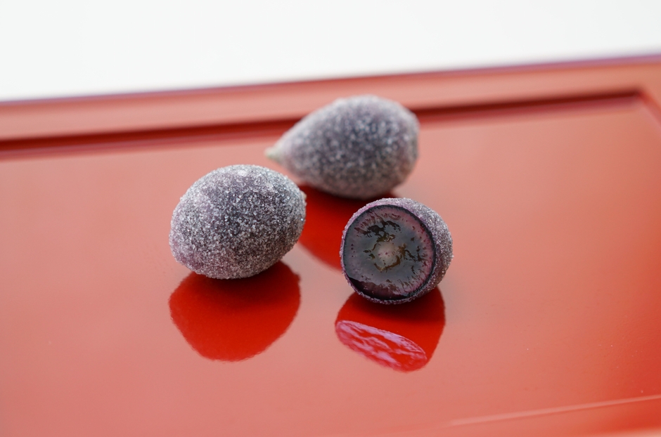長野県限定で栽培されているブランドぶどう「ナガノパープル」を贅沢に使用した和スイーツ「朝露のしずく」が、『和楽紅屋』にて期間限定で販売開始いたしました。「ナガノパープル」は大粒で種が無く、ポリフェノールが豊富で、皮ごと食べられるのが特徴。契約農家から届く朝摘みされた生の「ナガノパープル」を、新鮮なうちに求肥で包みこむことで、爽やかな甘味とモチモチの食感が楽しめます。10月上旬までの限定販売(予定)となります。