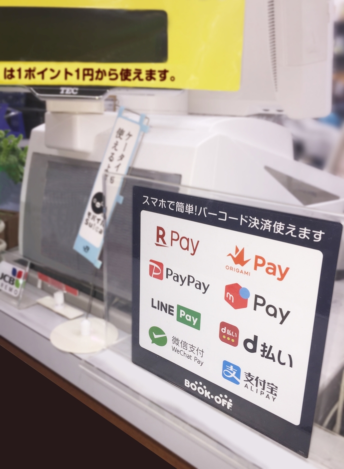 ブックオフグループホールディングス株式会社(本社:神奈川県相模原市、代表取締役社長:堀内 康隆)の子会社で、リユースショップBOOKOFFを運営するブックオフコーポレーション株式会社(本社:神奈川県相模原市、代表取締役社長:堀内 康隆、以下、ブックオフ)は、決済方法の多様化やキャッシュレス決済へ対応するため、「d払い」、「メルペイ」、「WeChat Pay(ウィチャットペイ)」、「Alipay(アリペイ)」の4ブランドのバーコード決済サービスをこのほど国内のBOOKOFF 586店舗で導入しました。