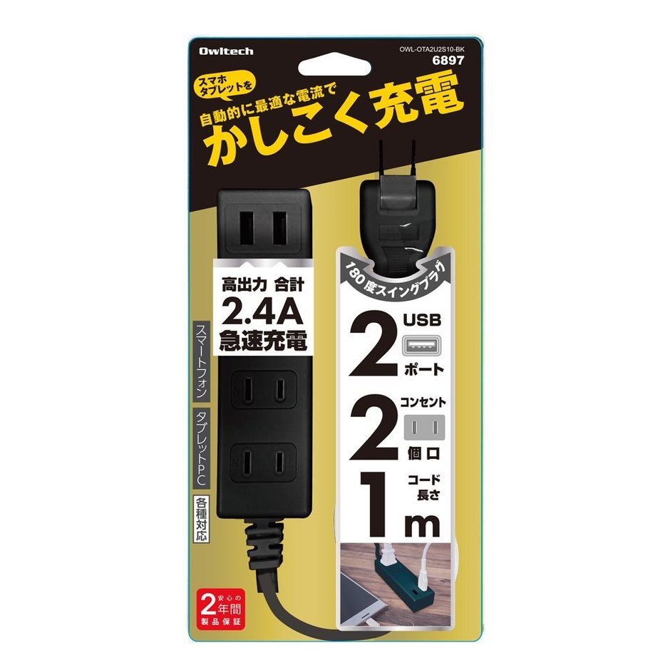 ・スマートIC搭載 急速充電2.4A出力対応 USB充電ポート付スマートOAタップ