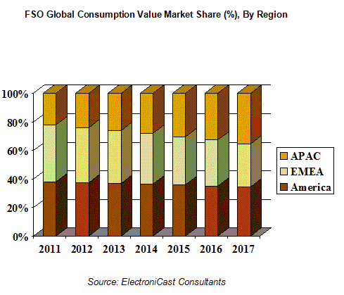 北米及び中南米地域のFSO装置に対する消費額の拡大は、米国やカナダにおける継続的なアップグレードや通信網の促進だけではなく、中南米地域の主要都市における経済成長の加速が要因として挙げられます。