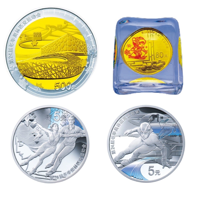 本記念コインでは、史上初めて夏と冬の両大会のオリンピック開催都市となる北京にちなみ、オリンピック記念コインとしては初の<金銀バイメタル貨>(注1)が発行されます。同コインには、両大会で使用される2会場や「万里の長城」がデザインされています。また、氷を模したユニークな鑑賞用カプセル入りの<金貨2種セット>や、4つの競技を躍動的に表現した<ホログラム銀貨4種セット>の3商品をラインアップします。
