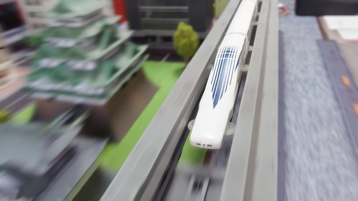 ガイドウェイ間に浮いた状態のままリニアが高速走行します。磁石の吸引力で浮上するので、電源を切っても車体はガイドウェイに浮き続けるため浮上するインテリアとしてもお使いいただけます。
